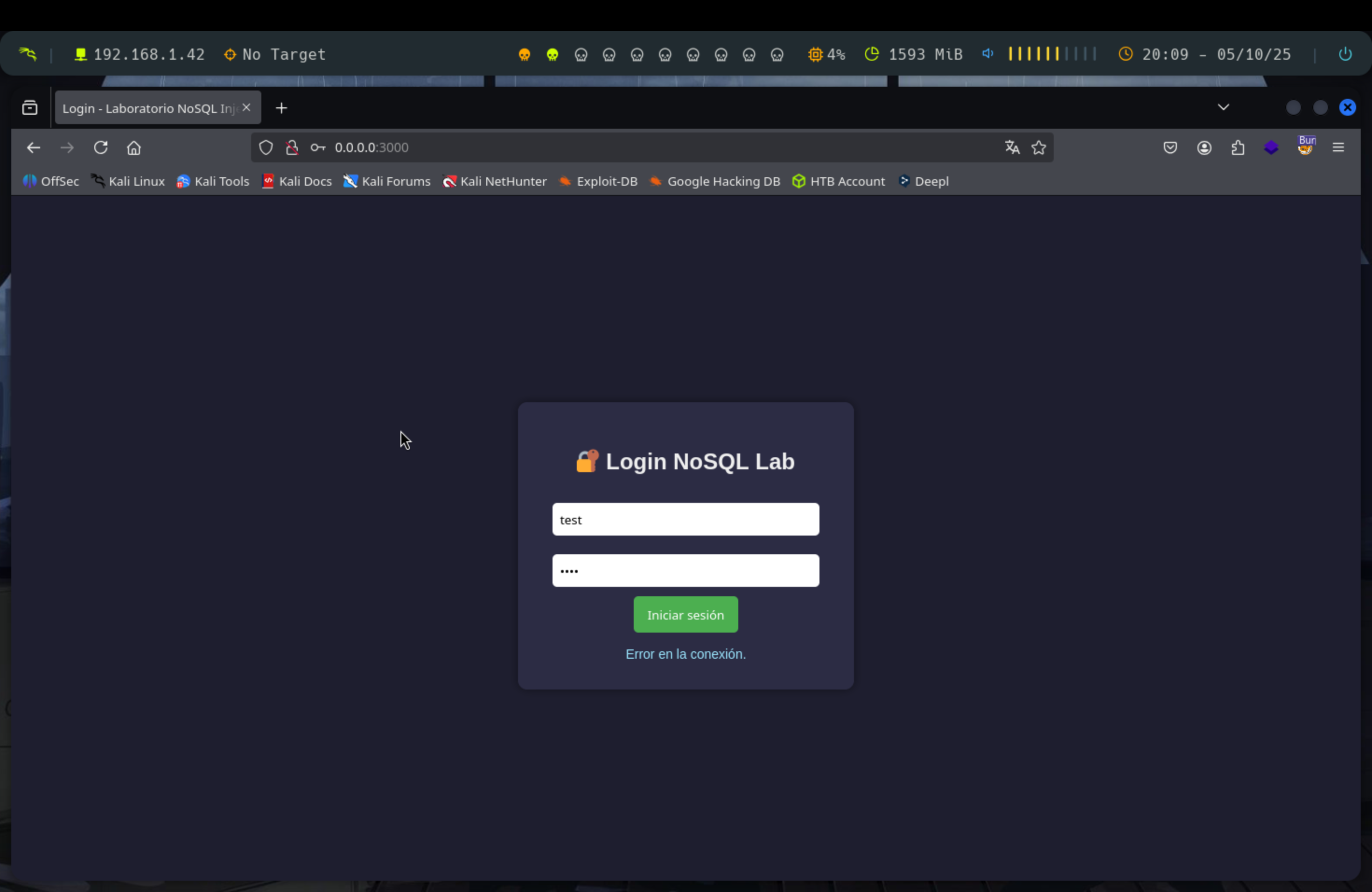 Tenemos frente a nosotros, un panel de login que es vulnerable a noSQL.