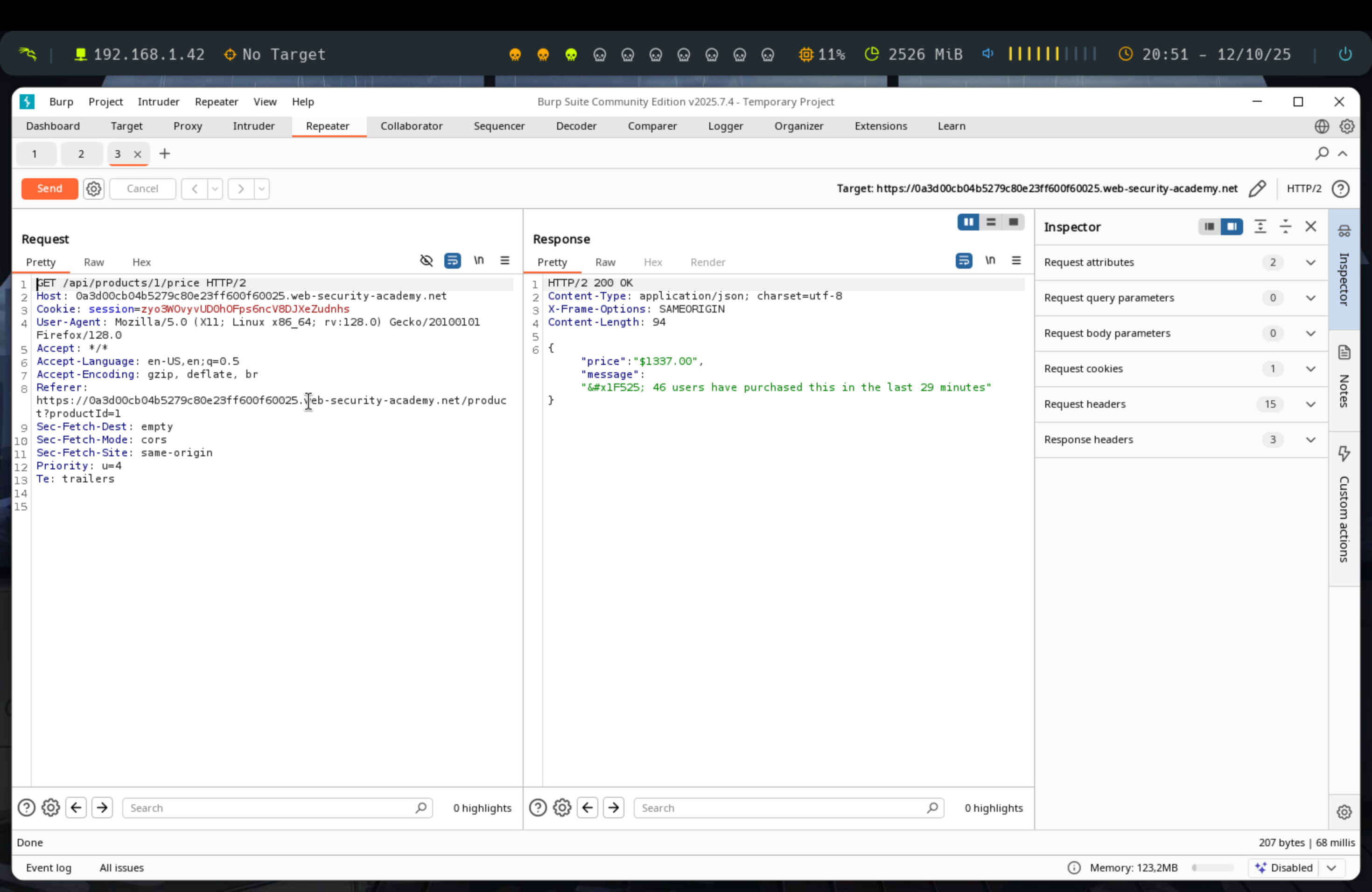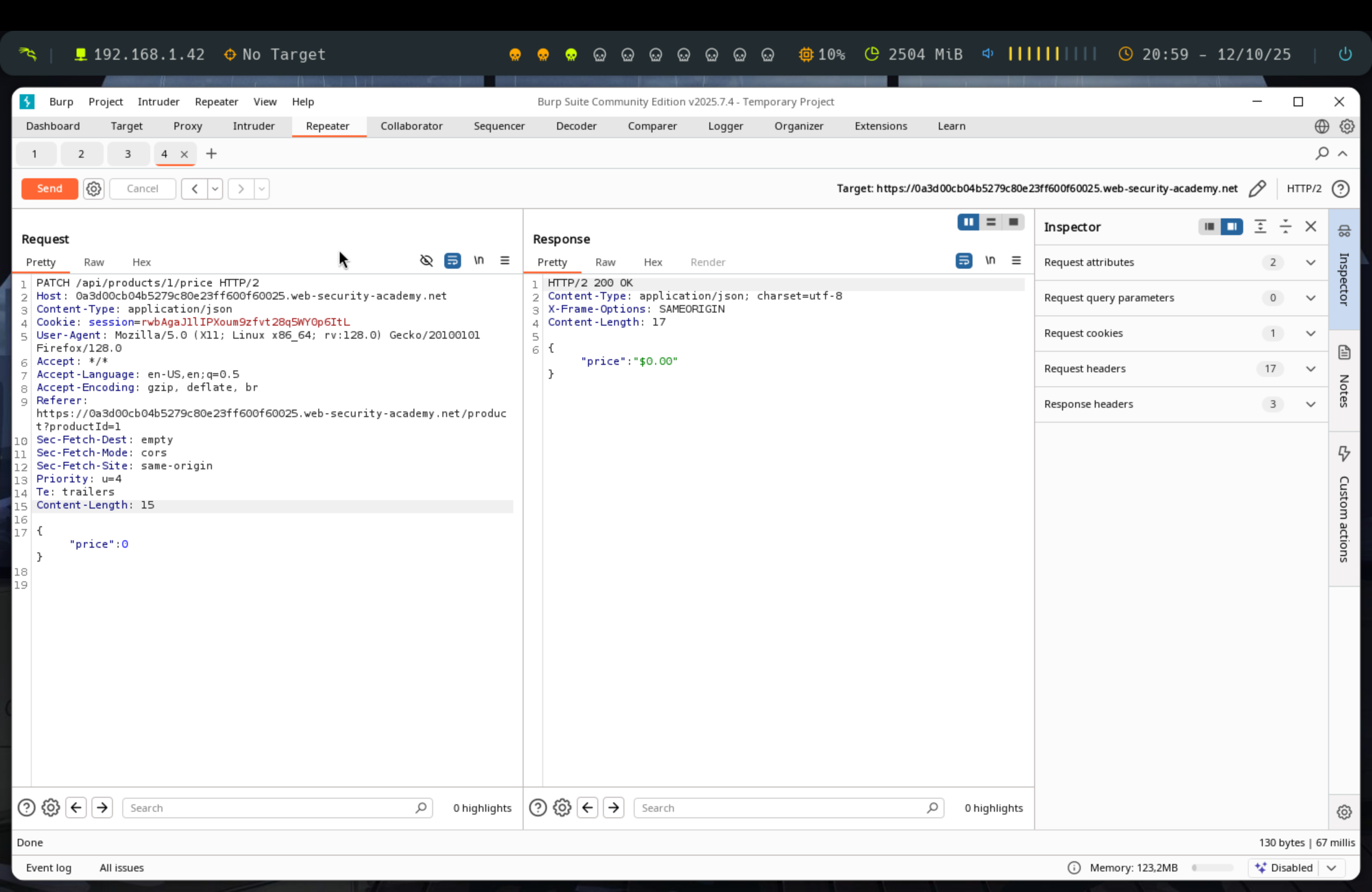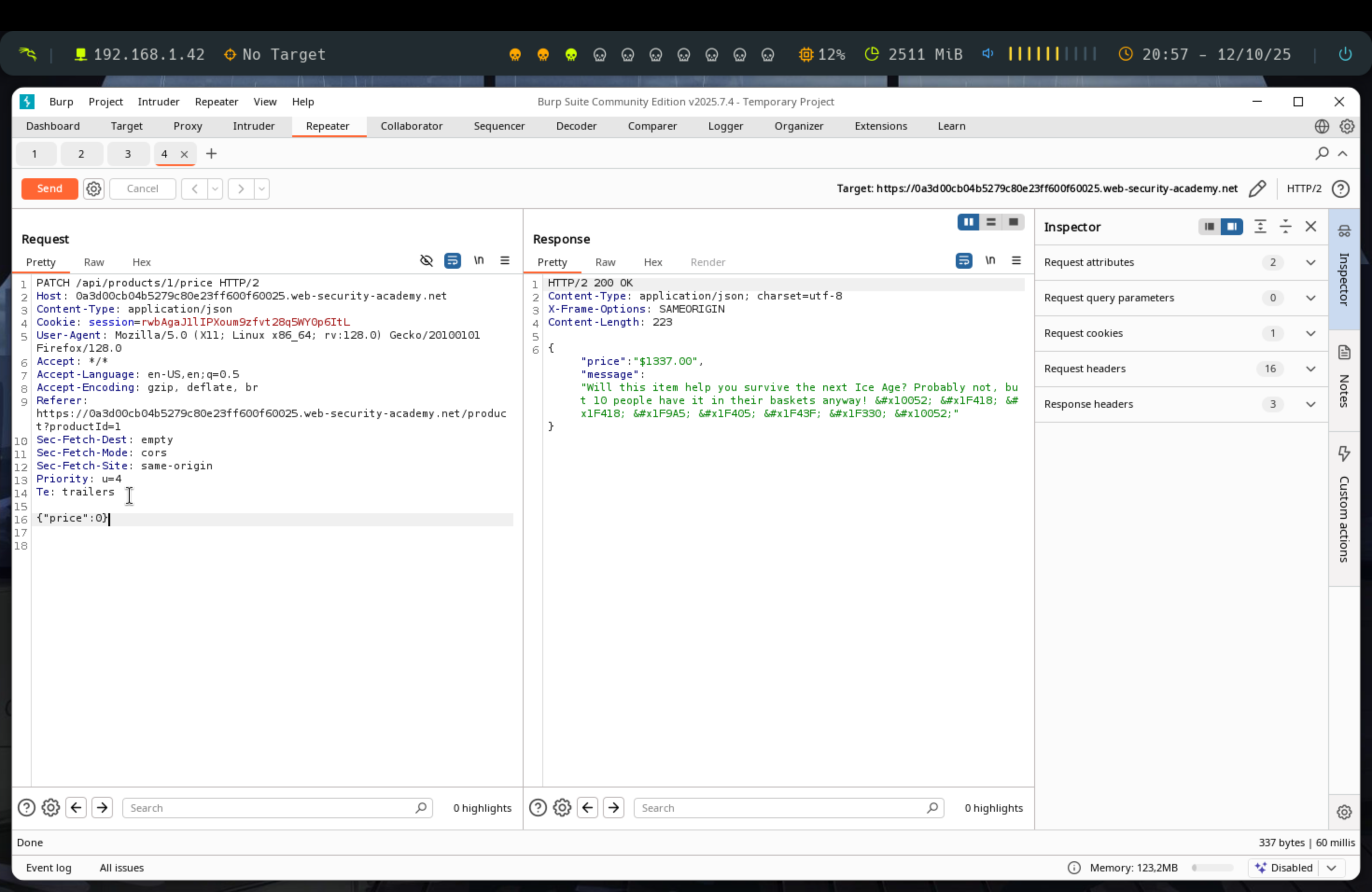 Al enviar la petición modificada, el precio del producto debería cambiar a cero.