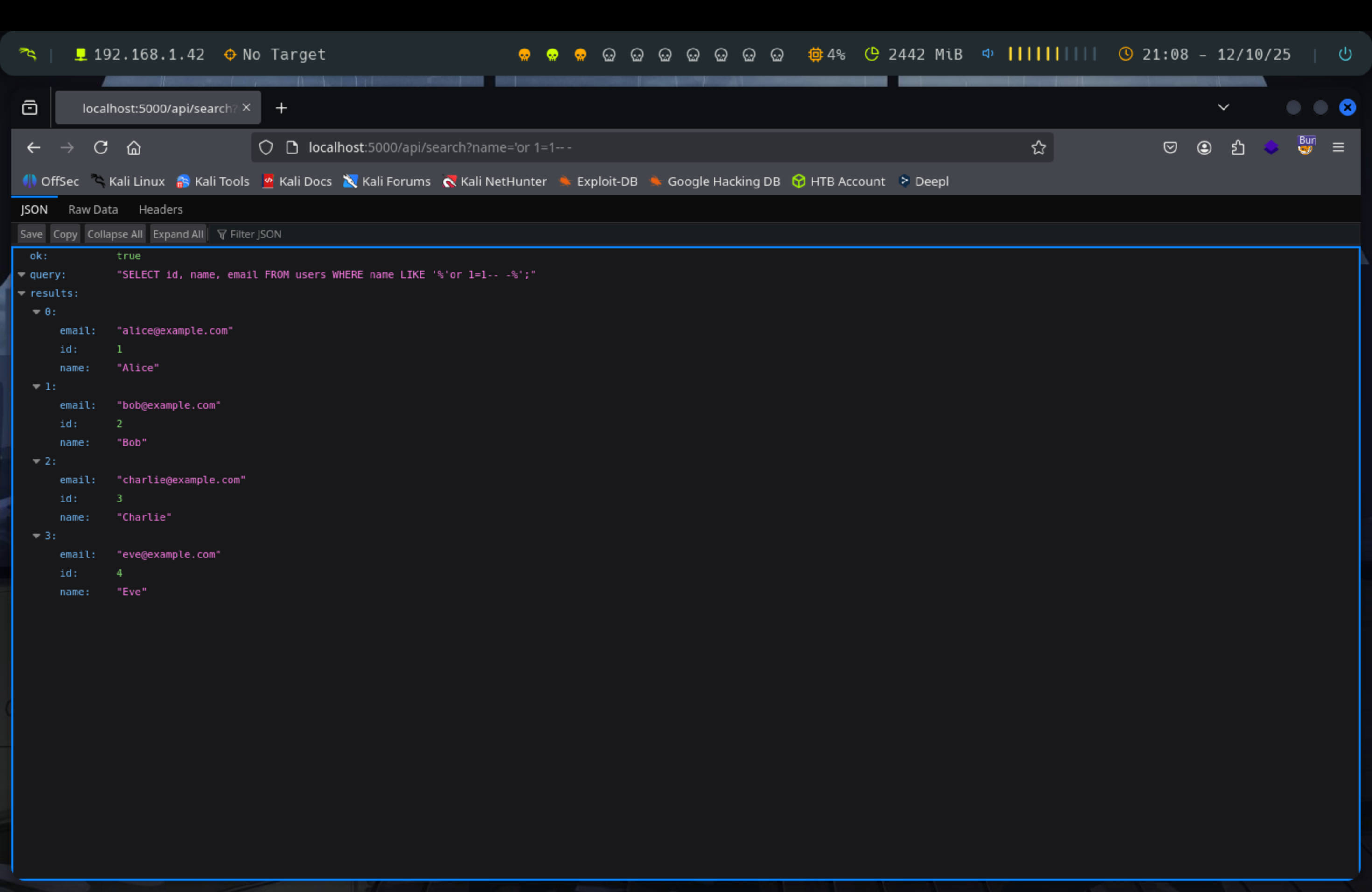 En este siguiente laboratorio, creado con chatGPT, vemos como usamos el endpoint de la API para hacer una inyección de código a la base de datos que corre por detrás.