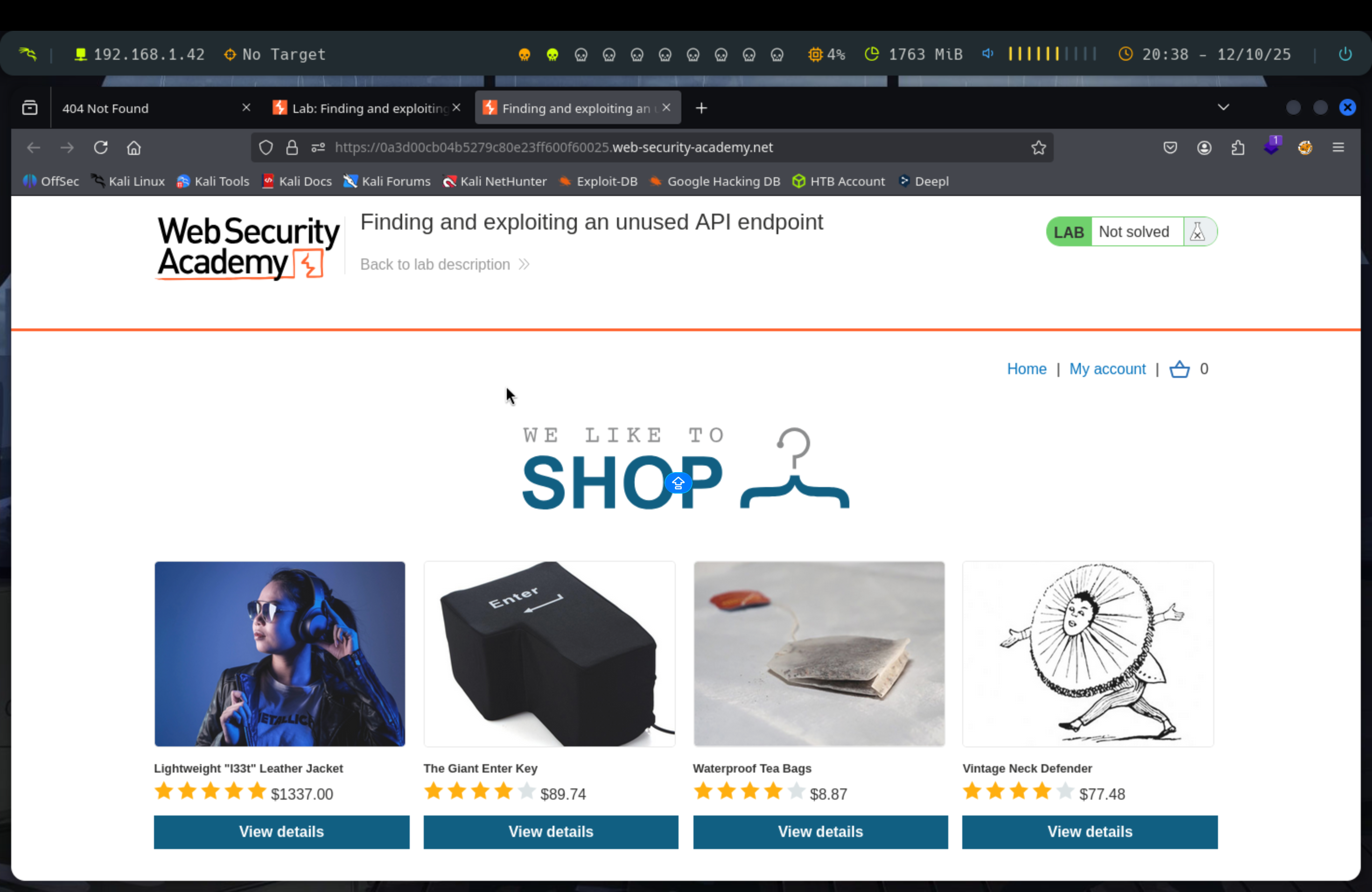 Una vez en el laboratorio, vemos una página web que tiene varios artículos a la venta, lo que haremos es modificar el comportamiento de la API para que el precio sea cero.