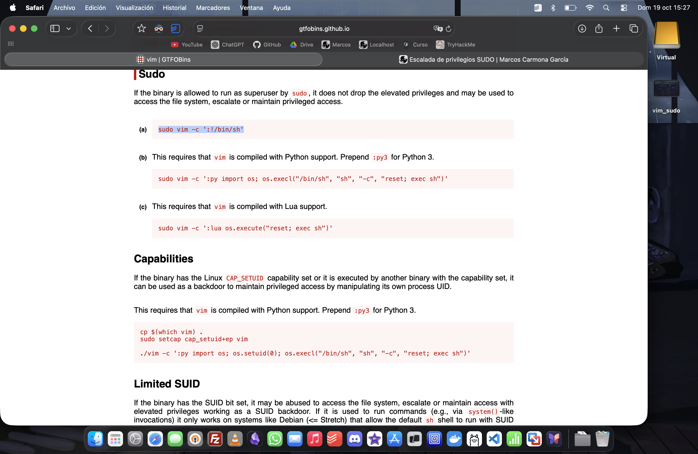 Ponemos en el buscador Vim y accedemos a la sección SUDO.