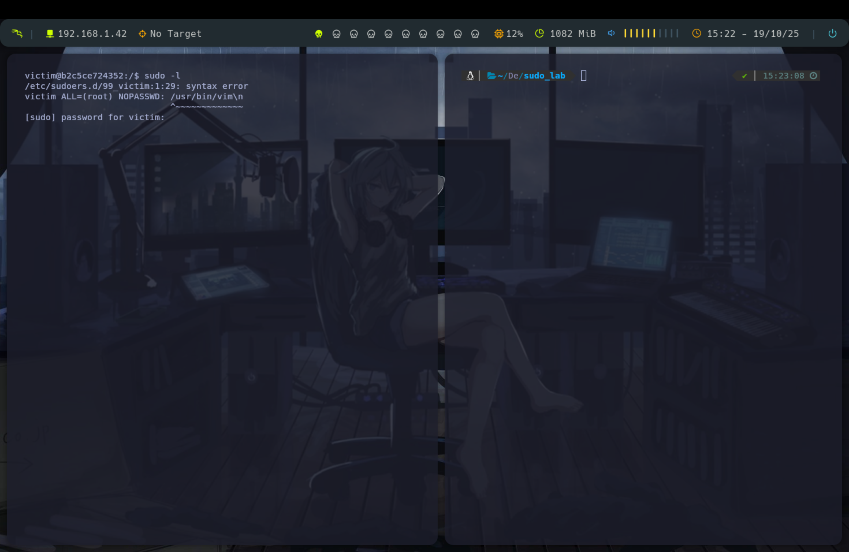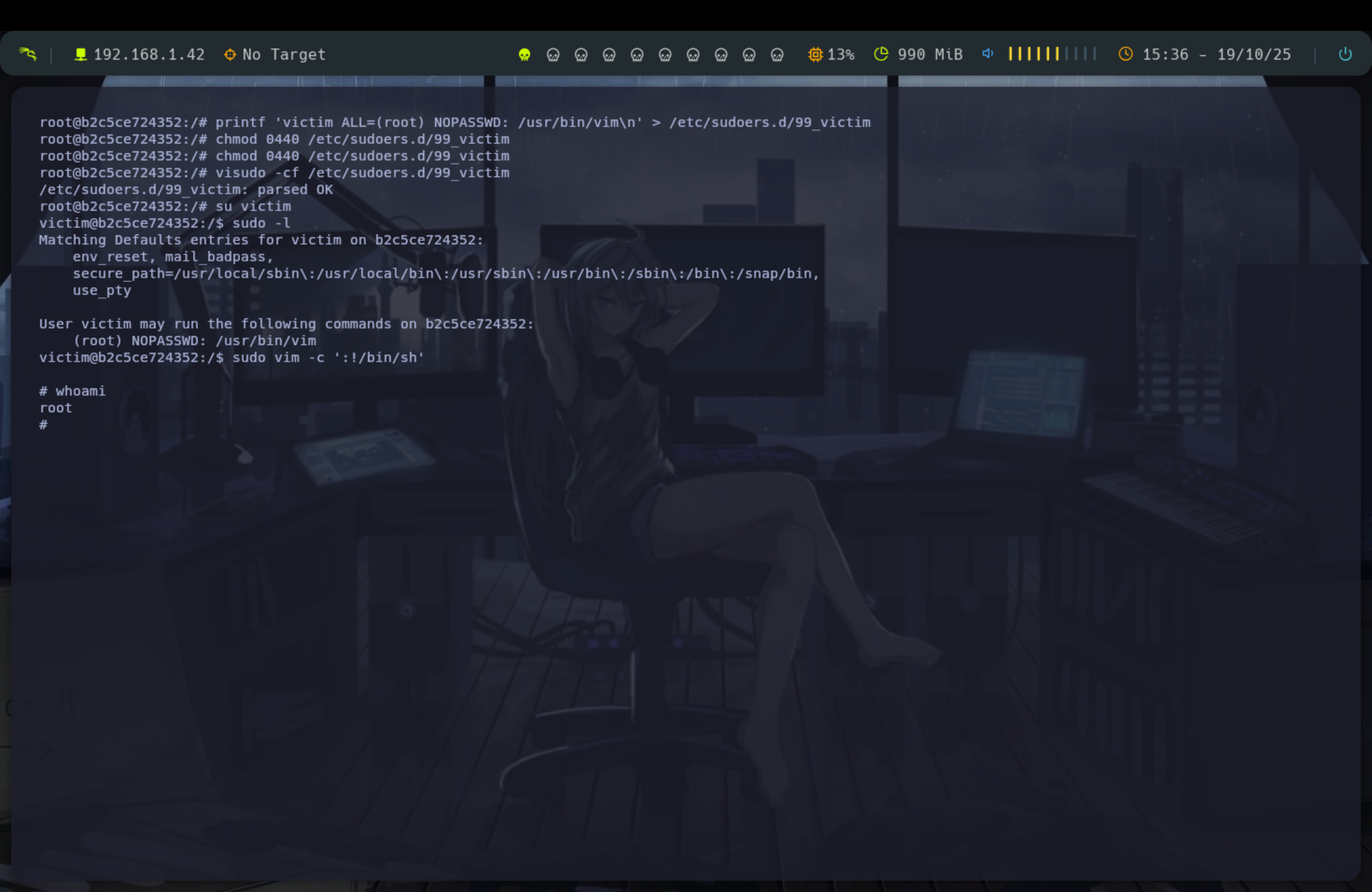 Nota: Claramente debemos tener un usuario sin privilegios en la máquina atacada. En este caso es un laboratorio de Docker hecho solo para ello.